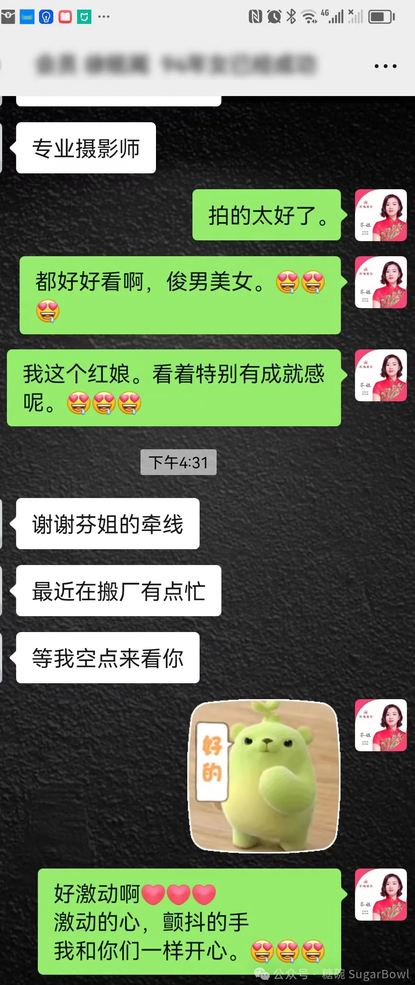 此外,还有两对新人的父母见面,并邀约糖碗红娘一起商量订婚事宜,幸福和期待感满满。这也是对我们工作莫大的信任与肯定!